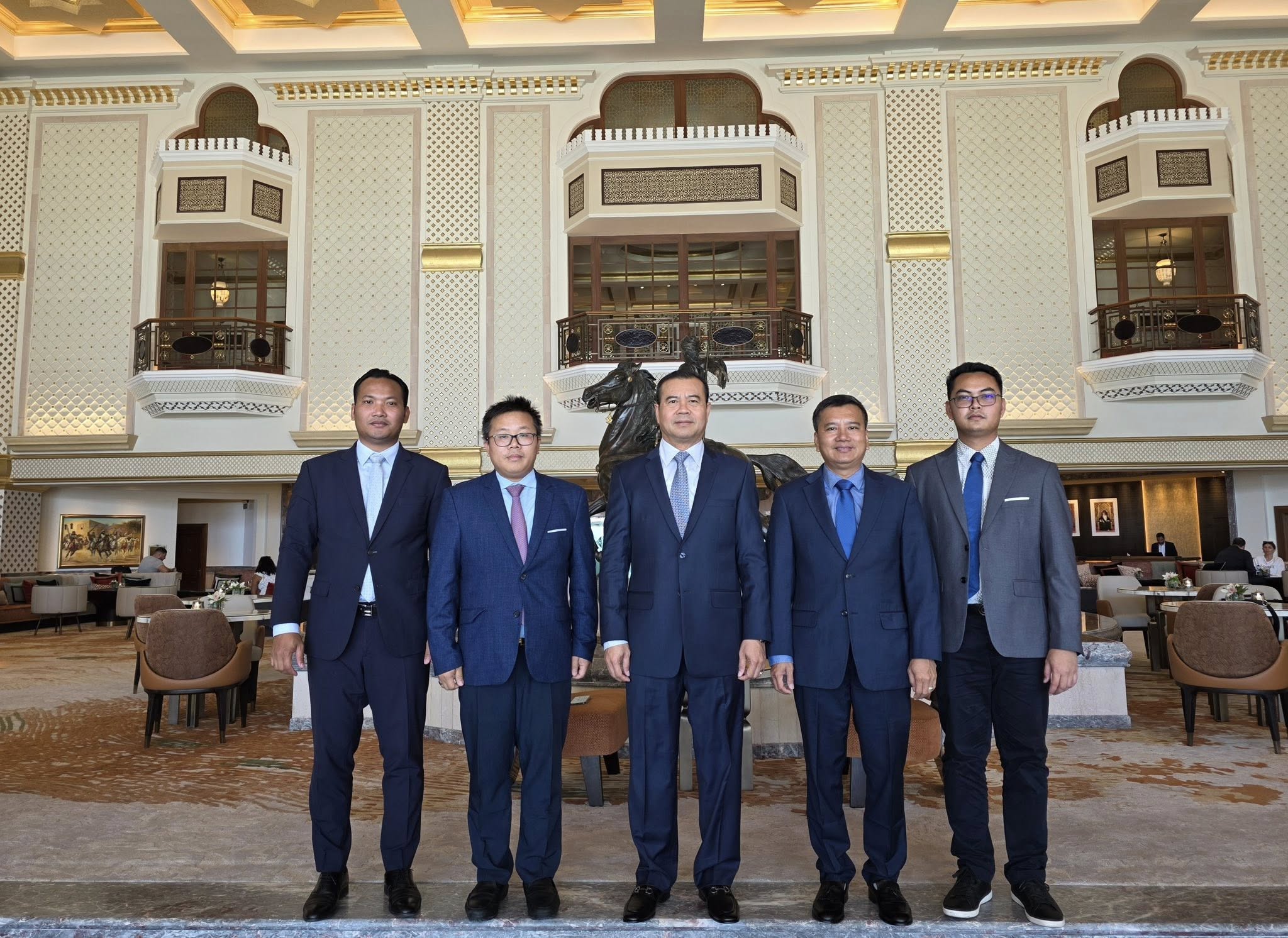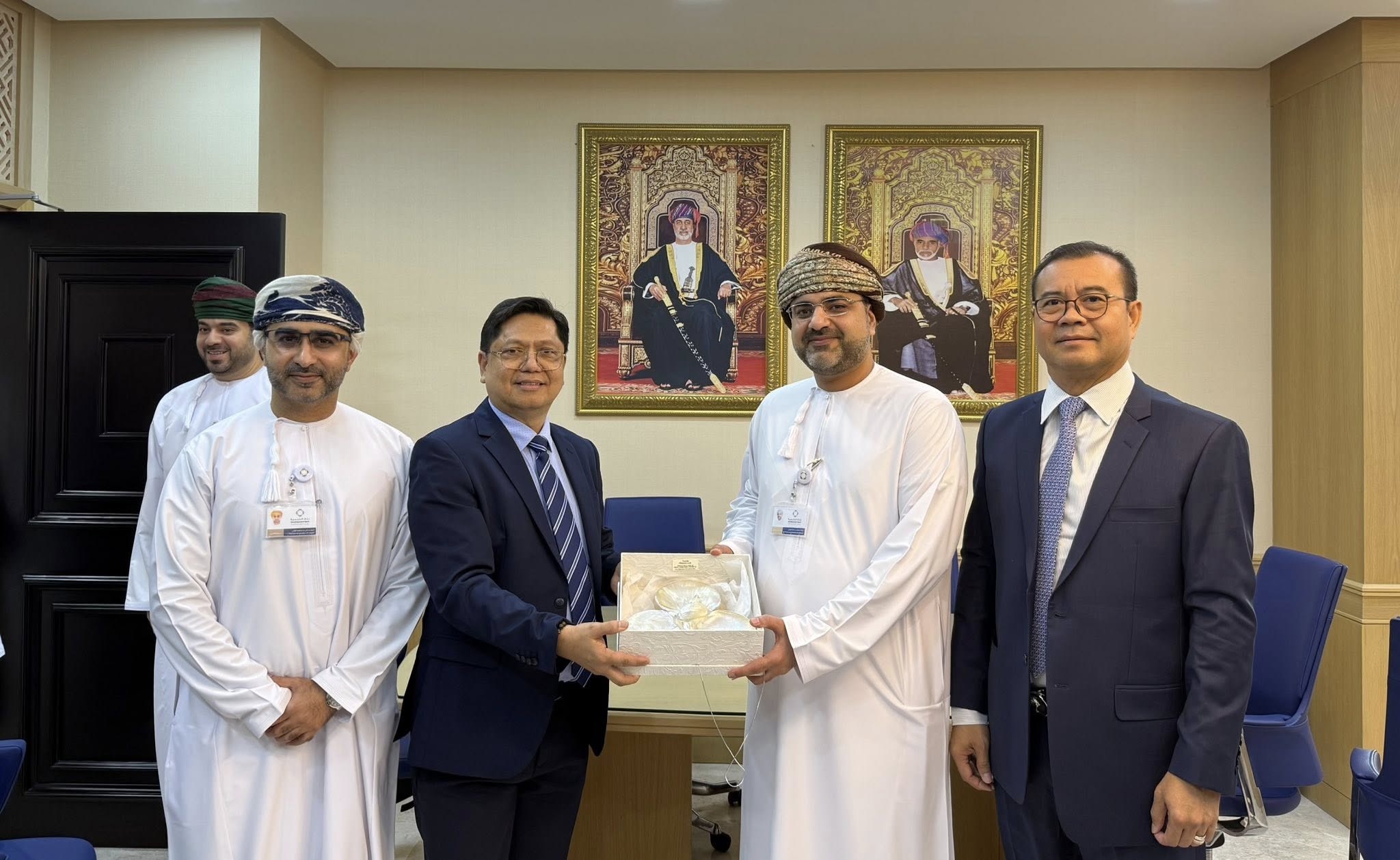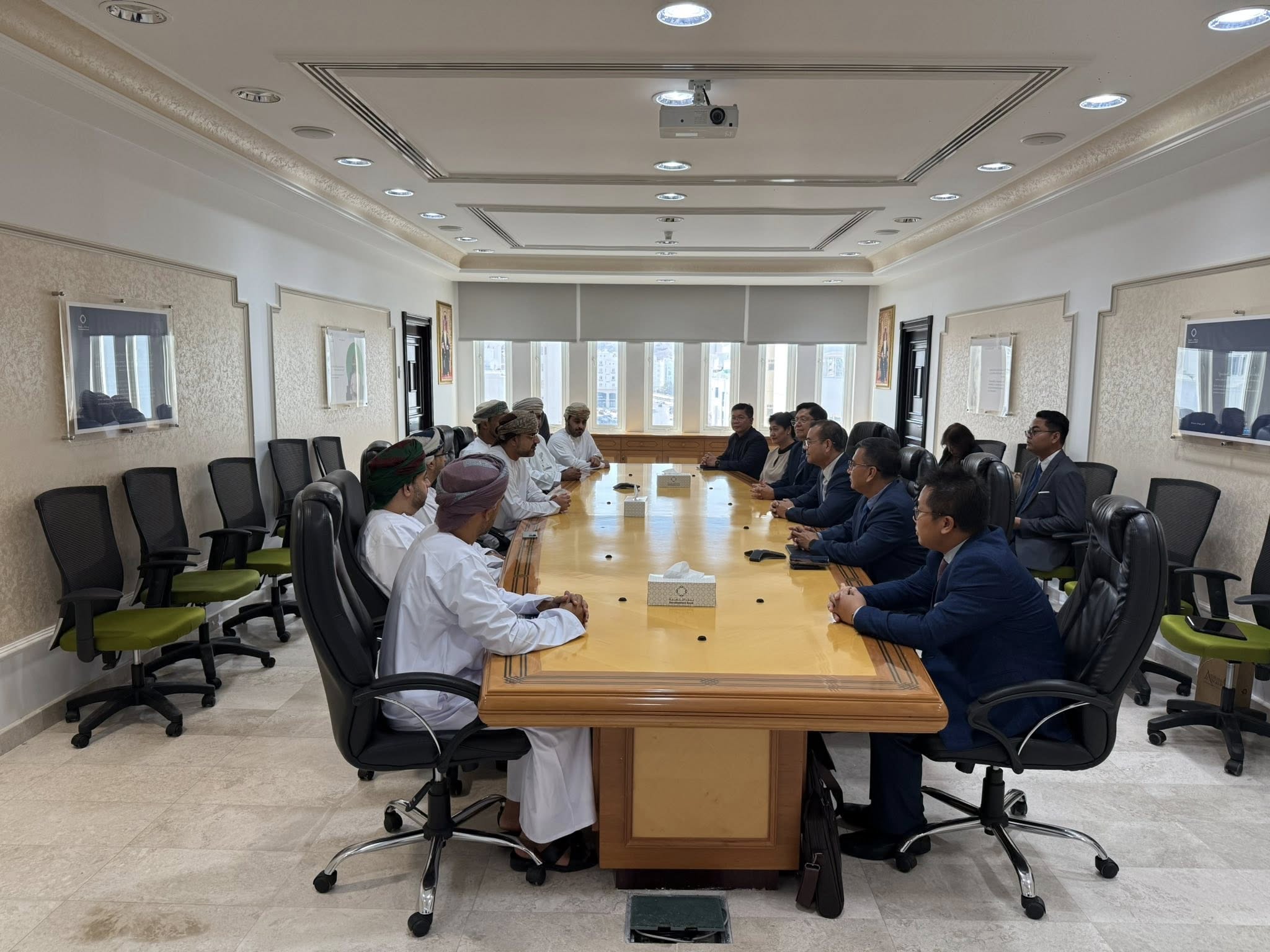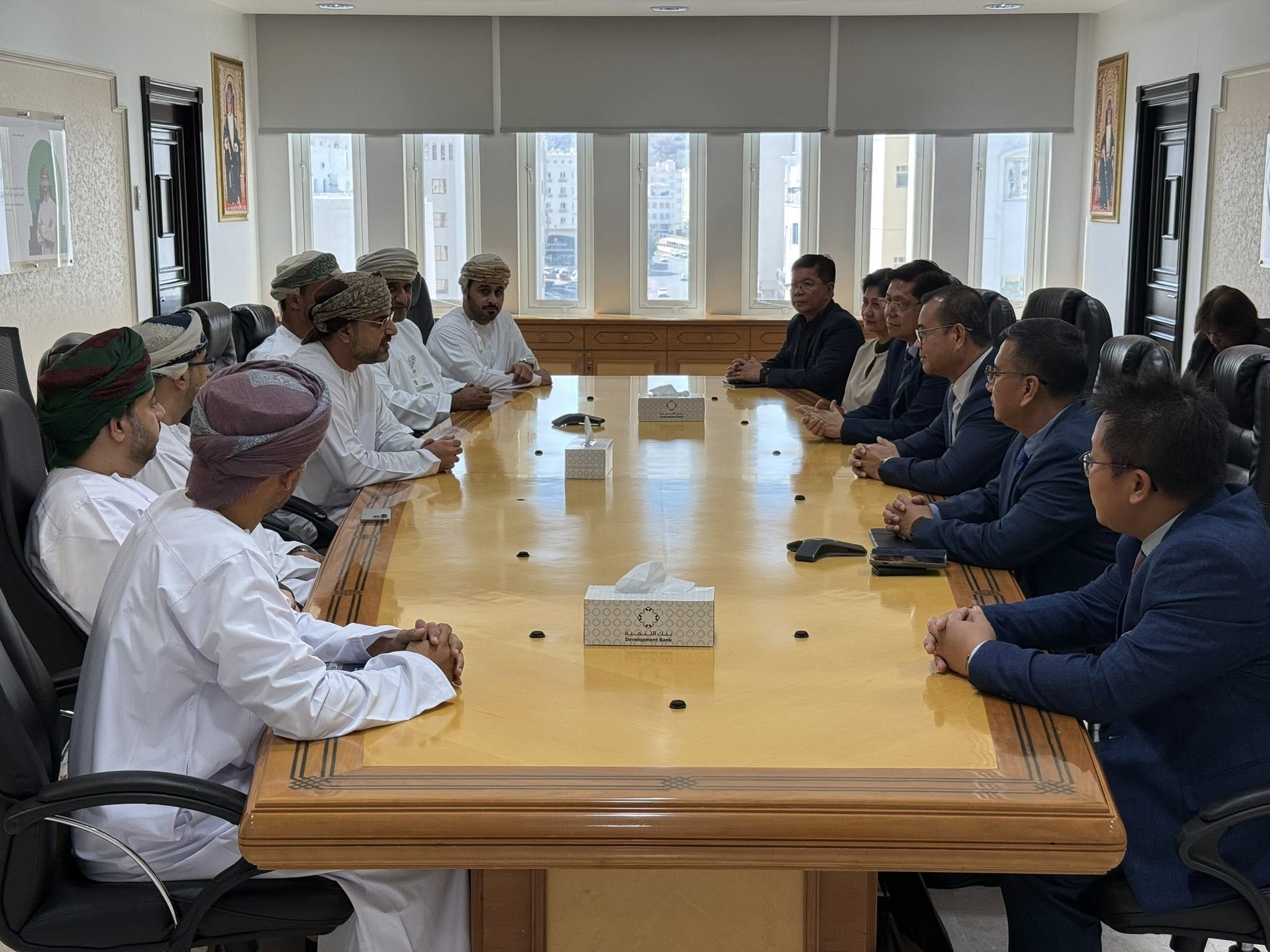 ទីក្រុងមូស្កាត, ប្រទេសអូម៉ង់៖ នៅព្រឹក ថ្ងៃចន្ទ ៩រោច ខែចេត្រ ឆ្នាំម្សាញ់ សប្តស័ក ពុទ្ធសករាជ ២៥៦៨ ត្រូវនឹងថ្ងៃទី២១ ខែមេសា ឆ្នាំ២០២៥ នេះ ឯកឧត្តមបណ្ឌិត កៅ ថាច ប្រតិភូរាជរដ្ឋាភិបាលទទួលបន្ទុកជាអគ្គនាយក ធនាគារអភិវឌ្ឍន៍ជនបទ និងកសិកម្ម (ARDB) និងជាប្រធានសមាគមគ្រឹះស្ថានហិរញ្ញវត្ថុអភិវឌ្ឍន៍ក្នុងតំបន់អាស៊ី និងប៉ាស៊ីហ្វិក (ADFIAP) រួមជាមួយលោក Enrique I. Florencio អគ្គលេខាធិការ ADFIAP និងសហការី បានជួបសម្ដែងការគួរសម និងពិភាក្សាការងារជាមួយ ឯកឧត្តម Mahmood Abdullah Al Aweini អគ្គលេខាធិការក្រសួងហិរញ្ញវត្ថុ និងជាប្រធានក្រុមប្រឹក្សាភិបាល នៃធនាគារអភិវឌ្ឍន៍ របស់អូម៉ង់ ព្រមទាំងសមាជិកក្រុមប្រឹក្សាភិបាល និងថ្នាក់ដឹកនាំជាន់ខ្ពស់នៃធនាគារអភិវឌ្ឍន៍ របស់អូម៉ង់ នៅទីស្នាក់ការកណ្ដាល នៃធនាគារអភិវឌ្ឍន៍។