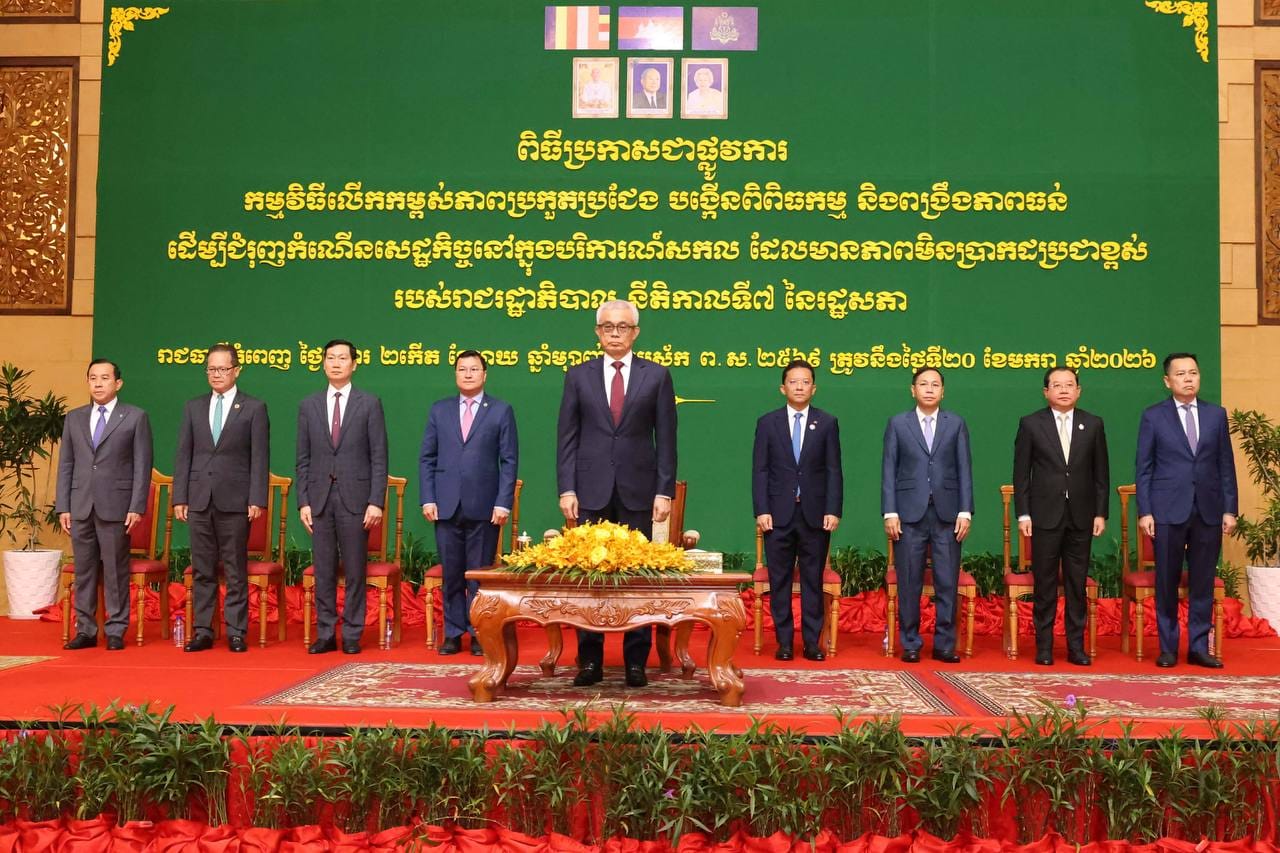 នាថ្ងៃអង្គារ ២កើត ខែមាឃ ឆ្នាំម្សាញ់ សប្តស័ក ព.ស. ២៥៦៩ ត្រូវនឹងថ្ងៃទី២០ ខែមករា ឆ្នាំ២០២៦, ឯកឧត្តមបណ្ឌិត កៅ ថាច ប្រតិភូរាជរដ្ឋាភិបាលទទួលបន្ទុកជាអគ្គនាយកធនាគារអភិវឌ្ឍន៍ជនបទ និងកសិកម្ម បានអញ្ជើញចូលរួមពិធីប្រកាសដាក់ឱ្យអនុវត្តជាផ្លូវការនូវ កម្មវិធីលើកកម្ពស់ភាពប្រកួតប្រជែង បង្កើនពិពិធកម្ម និងពង្រឹងភាពធន់ ដើម្បីជំរុញកំណើនសេដ្ឋកិច្ចនៅក្នុងបរិការណ៍សកល ដែលមានភាពមិនប្រាកដប្រជាខ្ពស់ របស់រាជរដ្ឋាភិបាល នីតិកាលទី៧ នៃរដ្ឋសភា ក្រោមអធិបតីភាព ឯកឧត្តមអគ្គបណ្ឌិតសភាចារ្យ អូន ព័ន្ធមុនីរ័ត្ន ឧបនាយករដ្ឋមន្រ្តី រដ្ឋមន្រ្តីក្រសួងសេដ្ឋកិច្ច និងហិរញ្ញវត្ថុ និងជាប្រធានគណៈកម្មាធិការគោលនយោបាយសេដ្ឋកិច្ច និងហិរញ្ញវត្ថុ (គ.ស.ហ.) តំណាងដ៏ខ្ពង់ខ្ពស់ សម្តេចមហាបវរធិបតី ហ៊ុន ម៉ាណែត នាយករដ្ឋមន្រ្តីនៃព្រះរាជាណាចក្រកម្ពុជា។