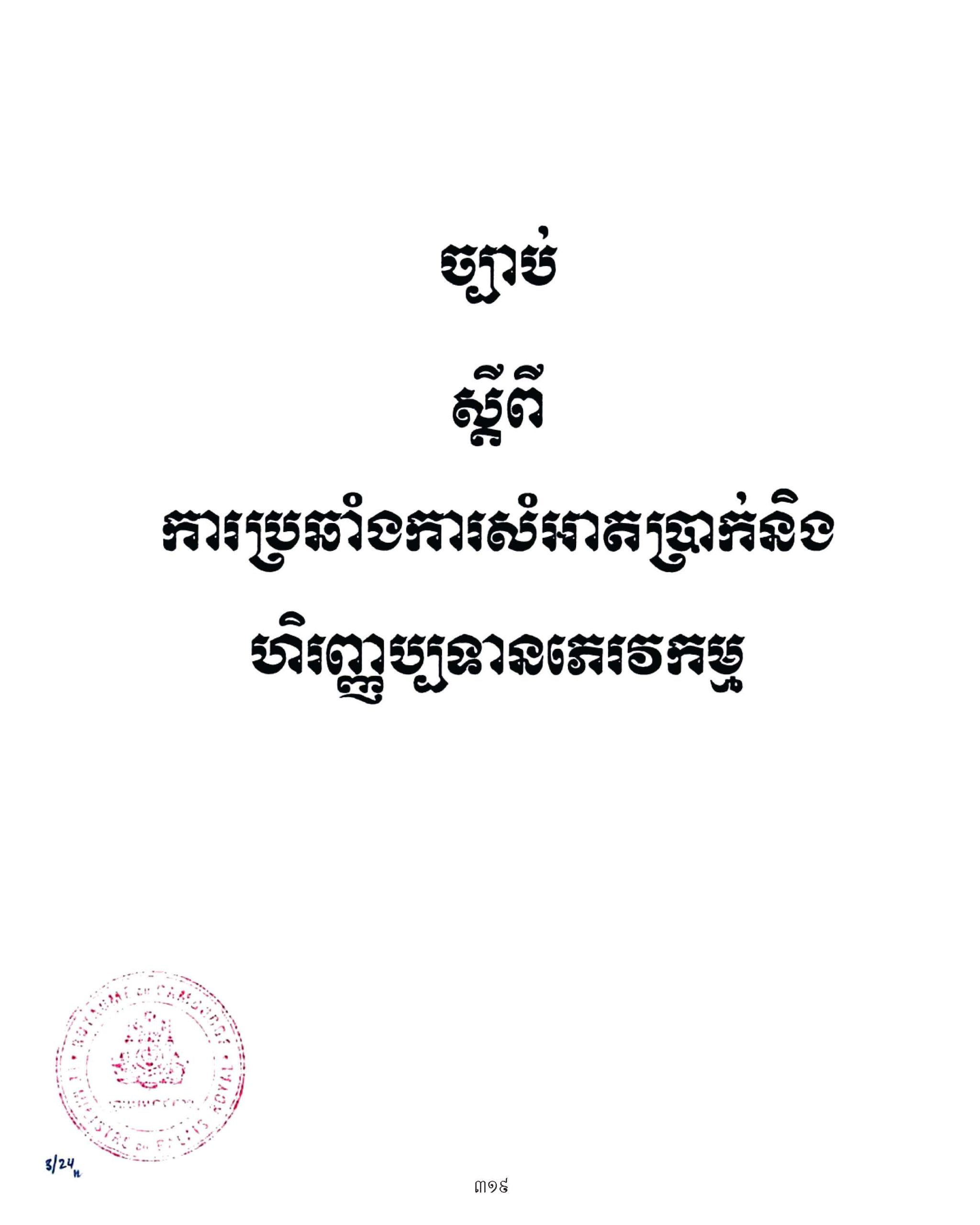 18 មីនា 2022 ច្បាប់ស្តីពី ភតិសន្យាហិរញ្ញវត្ថុ(២០០៩) ចុចទីនេះដើម្បីមើល អង់គ្លេស(PDF,2.69 MB) Post navigation Previous កម្រងច្បាប់និងបទប្បញ្ញត្តិអនុវត្តចំពោះគ្រឹះស្ថានធនាគារនិងហិរញ្ញវត្ថុ(២០១៦)Next ច្បាប់ស្តីពី ការប្រឆាំងការសំអាតប្រាក់ និងហិរញ្ញប្បទានភេវរកម្ម(២០០៧)
