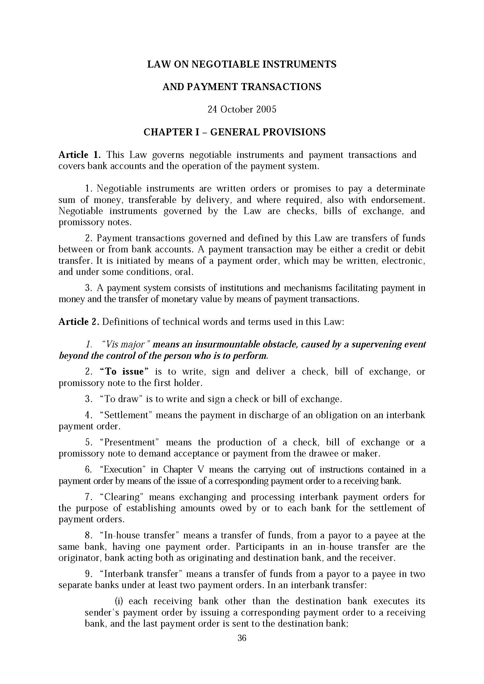 18 March 2022 Law on Negotiable Instruments and Payment Transactions (2005) Click on this to visit English(PDF,23.63 MB) Post navigation Previous Law on Commercial Enterprises (2005)Next Law on Banking and Financial Institutions (1999)